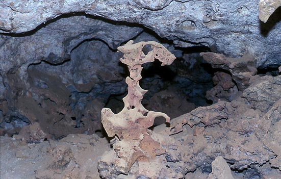 ![]() Stalactites broken by vandals in Surprise Cave. |