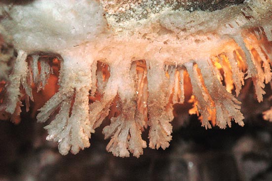 ![]() Delicate gypsum flowers from deep inside Surprise Cave. |
