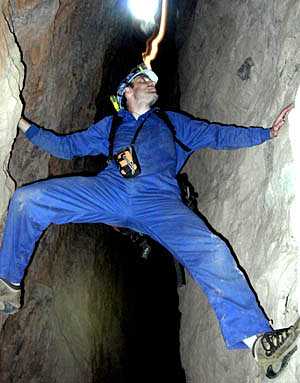 A few weeks later we returned to Carro Cave with Chris, Sonia, Alberto and Victor. Mapping the cave to the fissure took only a few minutes. Then, alas and alack, we discovered that further progress was very difficult off to the right and downright dangerous to the left, where you could upclimb to a higher level but above you were hundreds of rocks precariously piled one upon the other and looking like they would all descend if anybody sneezed.