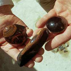 “This is red obsidian or sangre de Indio, (Indian’s blood)” said Manuel, showing us a beautiful mixture of red, black and shades of brown that I would never have associated with obsidian at all. “This stuff comes from a nearby hill owned by our ejido, (local campesinos’ cooperative)” said Manuel, “and we trade some of it for other obsidians. There’s black, of course, which is the most common and the greenish obsidian you brought us from the mine you explored (See The Creepy-Crawly, Creamy-Green Obsidian Mine). But take a look at this.”